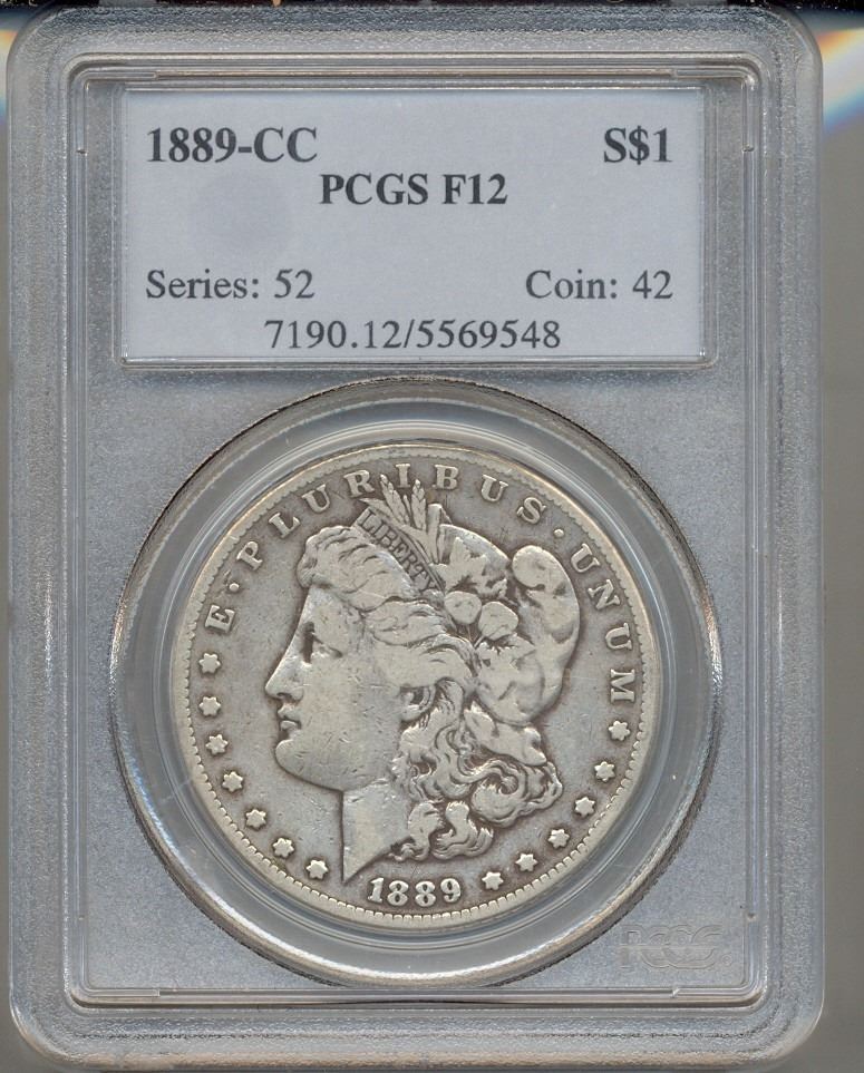 One 1889-CC $1 Morgan Silver Dollar Coin PCGS F12.