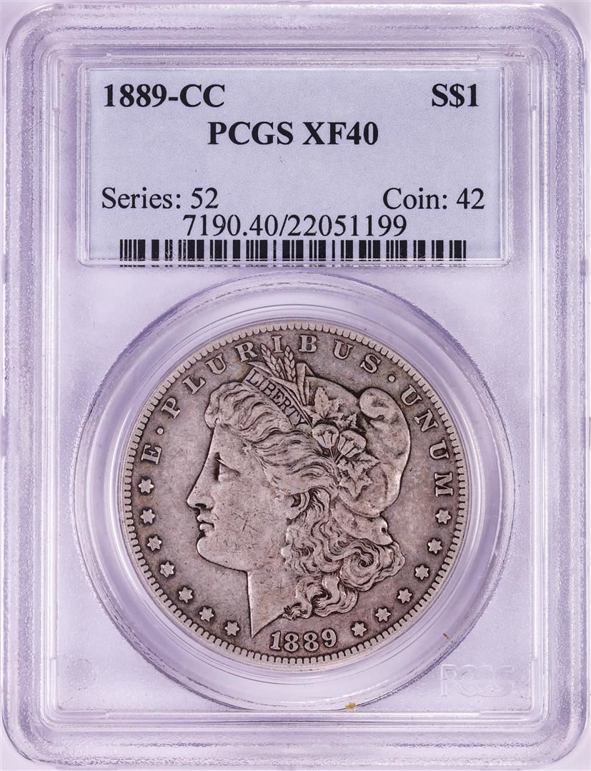 One 1889-CC $1 Morgan Silver Dollar Coin PCGS XF40. PCGS Graded.