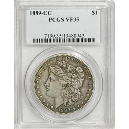 <B>1889-CC $1 VF35 PCGS.</B></I> Natural medium to dark gray surfaces with deeper ebony patina around the devices, especially near the borders. The vast majority of these coins, even those that are well circulated, have been cleaned and now show bright surfaces. The opportunity to acquire a fully original specimen should be carefully considered.<BR><BR><B>Coin Engraver:</B> George T. Morgan<BR><BR><b>Shipping:</b> Coins & Currency (<a target="_blank" href="http://www.heritageauctions.com/common/shipping.php">view shipping information</a>)