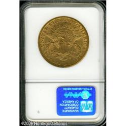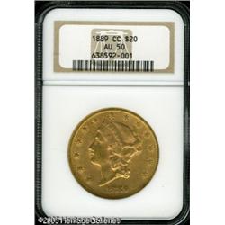 <B>1889-CC $20 AU50 NGC.</B></I> A lightly circulated Carson City issue with intact surfaces for the grade. A low mintage issue.<BR><I>Ex: Superior 8/02, lot 2240.</B></I><BR><I>From The Richard J. Chouinard Collection of United States Coins, Part Two.</B></I> Lot:9207