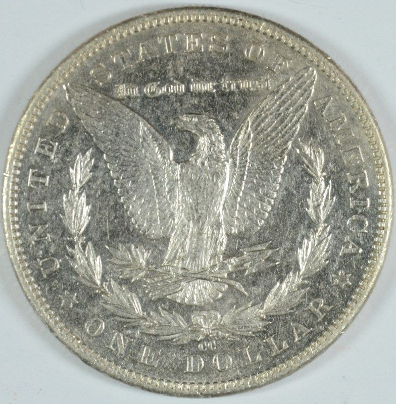 OTHERWISE NO MARKS, ABSOLUTELY NO WEAR, FULL BREAST FEATHERS, THE RAREST "CC" DOLLAR! ESTIMATE, $19,500.00 TO $22,000.00