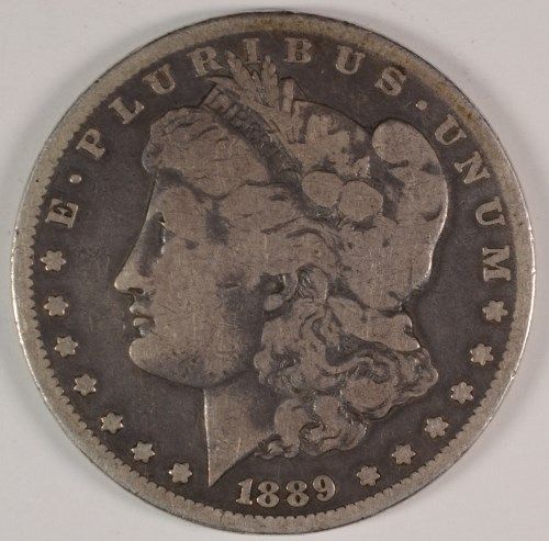 1889-CC MORGAN SILVER DOLLAR, VG+ NICE, KEY DATE COIN