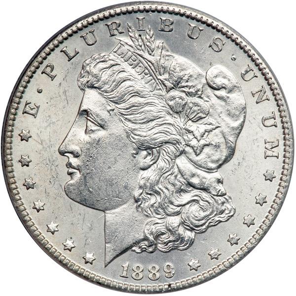 1889-CC PCGS graded Genuine. Cleaned. Our grade is MS60 with light hairlines. Popular key date. It seems that when Grover Cleveland was elected president in 1884 (and took office in 1885), one of the first things he did in a budget cutting exercise was to suspend operations at the Carson City Mint. The mint continued on a custodial level only. As soon as he left office in 1889, his successor, Benjamin Harrison, reopened the mint in July 1889 as a favor to his supporters and constituents. Four years of dormancy had left the Mint in a state of disrepair. There was only sufficient time to strike 350,000 silver dollars before year-end when the dates on the coins would be changed to 1890. This is why 1889-CC became the Must Have issue from the Carson City Mint for any serious buyer of Morgan Silver Dollars (PCGS # 7190) .