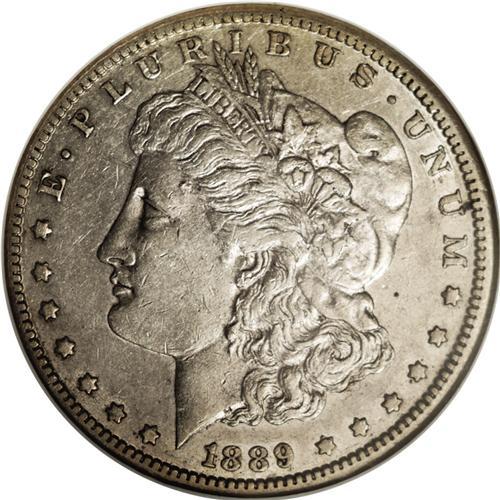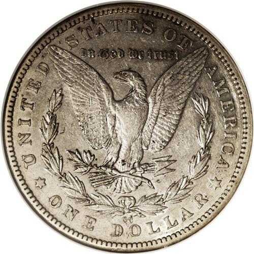 <B>1889-CC<img border='0' src='http://www.heritagecoins.com/images/star.gif' width=10 height=10>$1> AU53 NGC.</B></I> Modest wear on this important date CC dollar makes it a nice, problem-free example for the budget-minded collector. The coin retains all but the very highest points of detail, still has good silver color, with no contact marks of consequence.