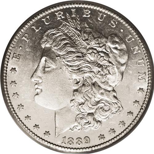 <B>1889-CC S$1 AU58 PCGS.</B></I> After a four-year respite, the Carson City Mint resumed production of gold and silver coinage in July 1889. Here is a lightly circulated example of this rare, key date issue. Both sides are free from large or singularly distracting abrasions, but wispy blemishes are common in the fields areas. Highpoint wear seems negligible, and is not readily evident on either side. The surfaces are a silver-gray color, and show a great deal of underlying prooflikeness in the fields. A faint degree of milky beige-tan patina is noted on the reverse. By far the scarcest Carson City Morgan dollar, particularly in grades above XF.<BR><BR><b>Shipping:</b> Coin/Currency (<a target="_blank" href="http://www.heritageauctions.com/common/shipping.php">view shipping information</a>)