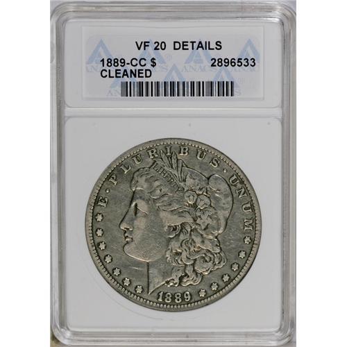 1889-CC S$1 --Cleaned--ANACS. VF20 Details. A circulate