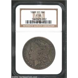 1889-CC S$1 Fine 15 NGC. Natural medium to dark gray surfaces are notable for their balanced wear an