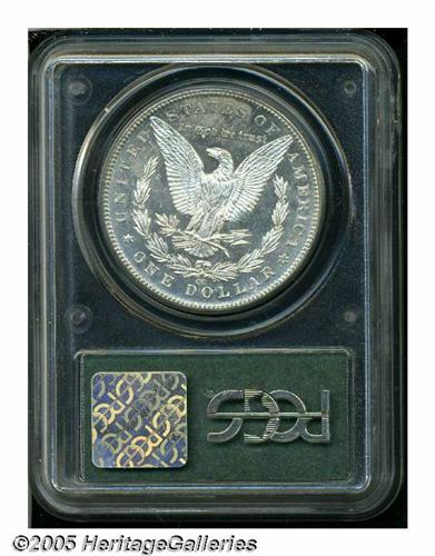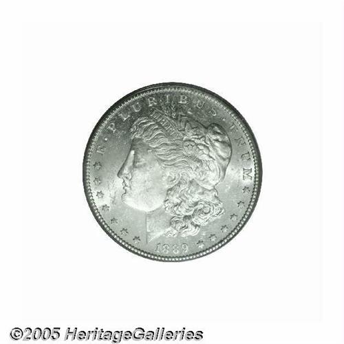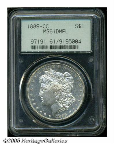 <B>1889-CC<S$1> MS61 Deep Mirror Prooflike PCGS.</B></I> Although reopened on July 1, 1889 after a four-year closure, the Carson City Mint did not resume Morgan Dollar production until October of that year. With so little time remaining before the end of the calendar year, it is little wonder that the mintage of the 1889-CC amounted to just 350,000 pieces. A decent percentage of this total was placed into circulation at the time of issue with the result that, when offered at all, this key date is likely to be worn to one degree or another. Some Uncirculated coins, however, did emerge from federal holdings from the 1920s through the 1950s, most in the West. These pieces have long been absorbed by the market and, today, the '89-CC is rare at all levels of Mint State preservation.<BR> The deeply mirrored fields on this specimen present a noticeable contrast with the mildly frosted devices, and faintly dappled milky-gray color visits localized areas over each side. The design elements are sharply struck, although a touch of minor softness is noted on the hair above Liberty's ear. Some luster grazes and scuffs are present on both sides. It is possible that this coin is somewhat conservatively graded.<BR><I>From The Dr. John L. Pellegrini Collection.</B></I>