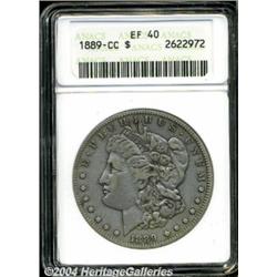 <B>1889-CC<S$1> XF40 ANACS.</B></I> Generally slate-gray in color, but trace amounts of charcoal patina outlines the devices. Richly detailed for the grade, a thin pinscratch is noted across the lower portion of the figure of Liberty. Not the lowest mintage Carson City issue, but unlike those dates, it did not appear in force in the GSA sales.<BR><I>From The Dennis Gundy Collection.</B></I> <BR><BR><B>Important notice:</B> Heritage usually auctions material at the rate of 200-250 lots per hour. On some occasions eBay Live bid software or the Internet may not be able to keep up with the pace of the auction. We recommend placing a realistic absentee bid now as insurance to avoid disappointment. Occasionally the auctioneer may eliminate or reject an eBay Live bid, and the auctioneer may also reopen a lot after the close of the eBay live bidding (usually because we missed an audience bid), and may reject your bid even if it shows you as the winning bidder. By bidding via eBay Live, you agree that Heritage may award the lot to another bidder at its sole discretion under the circumstances described above or any other reasonable circumstances. Since eBay bids are not shown to us until we open the lot on the floor, we treat those bids just like floor bids. In most cases the floor responds before the eBay bid is presented to us, due to Internet lag time, so for consistency we have made it a policy that floor bids are always considered first over tie eBay live bids. Also please note that all Heritage lots purchased through eBay Live carry a 20% Buyer's Premium. Please make sure you read the Terms and Conditions before you bid. </span></font></tr></table></td></tr></table>