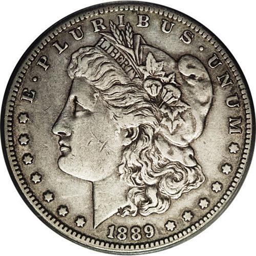 <B>1889-CC<img border='0' src='http://www.heritagecoins.com/images/star.gif' width=10 height=10>$1> XF40 PCGS.</B></I> An exceedingly attractive XF example of this key date. The pewter-gray surfaces still show some luster, especially near the peripheries. Both sides are notably free from large or distracting abrasions, except for one moderate mark on the upper reverse field, directly above OD in GOD, and a couple of ticks on Liberty's cheek. A pleasing example of what is by far the scarcest CC-mint Morgan, particularly in grades above XF.