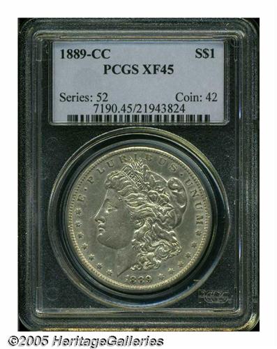 <B>1889-CC<S$1> XF45 PCGS.</B></I> Partially lustrous with a delicate golden caste overall. One of several similarly graded examples of this prized Carson City issue to be offered.