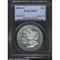 1889-CC S$1 XF45 PCGS. This untoned example displays moderately glowing fields and devices that are.