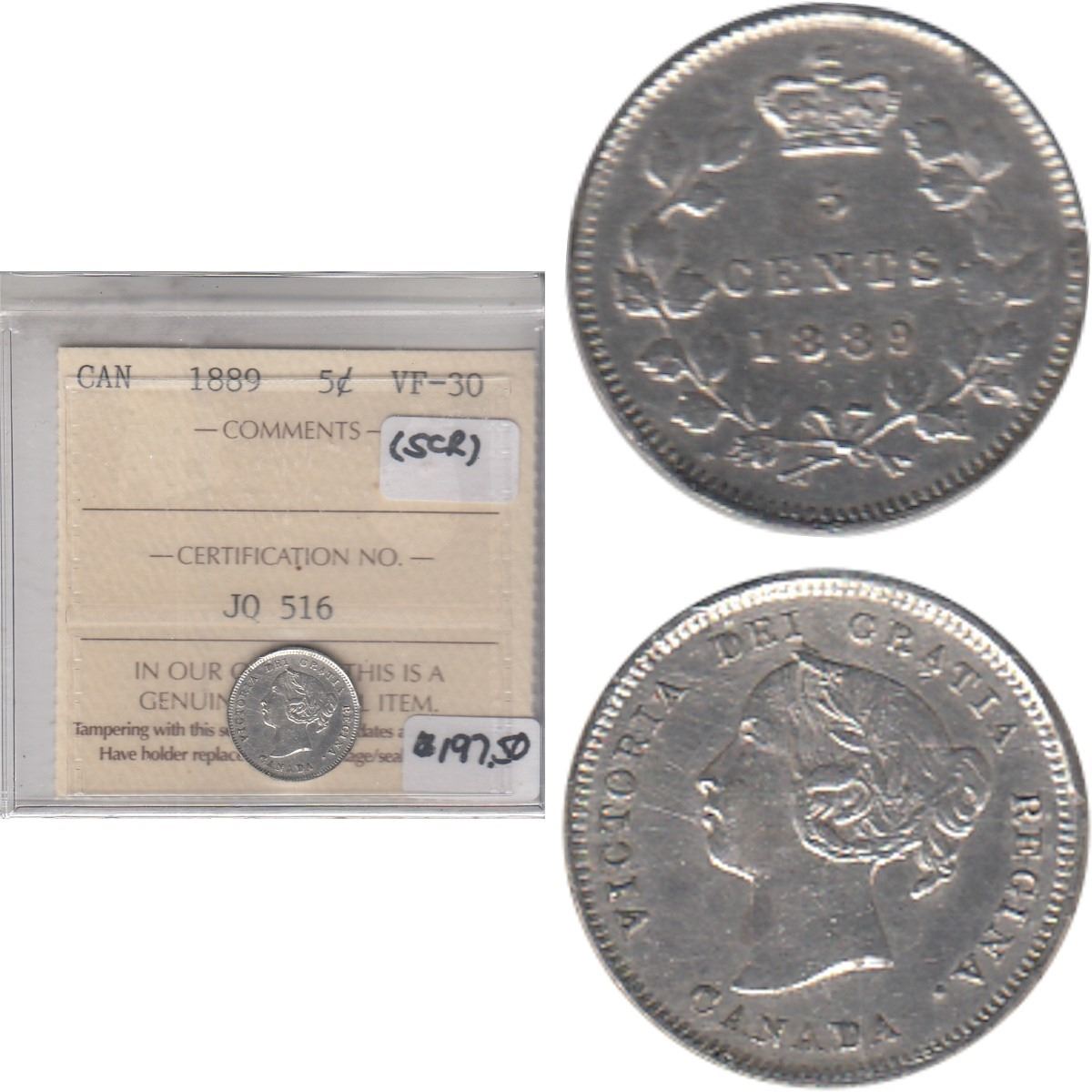 1889 Canada 5-cent ICCS Certified VF-30 (scratch)