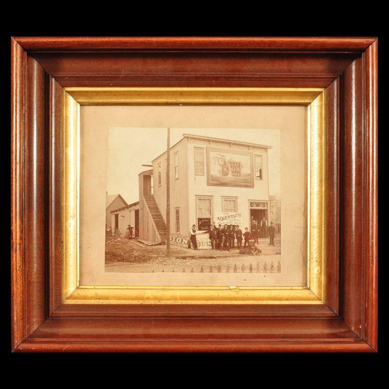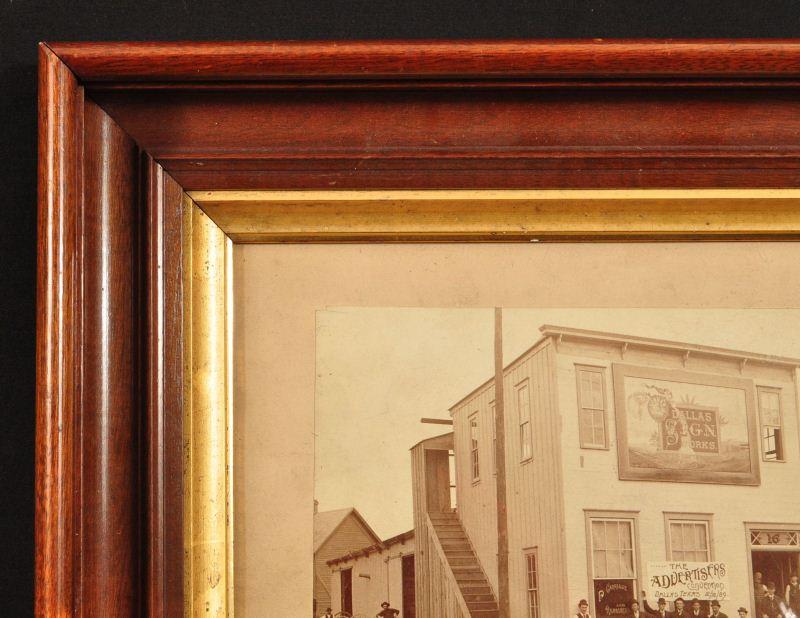Dallas Sign Works Framed Photograph. "The Advertisers Convention Dallas, Texas 12/10/89" Banner on building. Image measures 6" x 7-1/2".