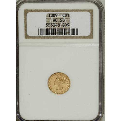 1889 G$1 AU58 NGC. NGC Census: (23/1551). PCGS Pop