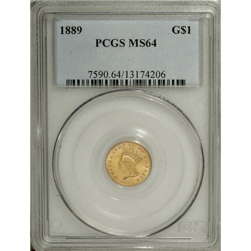 1889 G$1 MS64 PCGS. At first glance, this lustrous gol