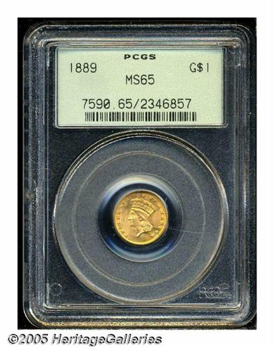<B>1889<G$1> MS65 PCGS.</B></I> Well struck and highly lustrous, with smooth, unmarked, nicely toned surfaces that reveal intense apricot-red color on the reverse, and a splendid, sparkling overall appearance.