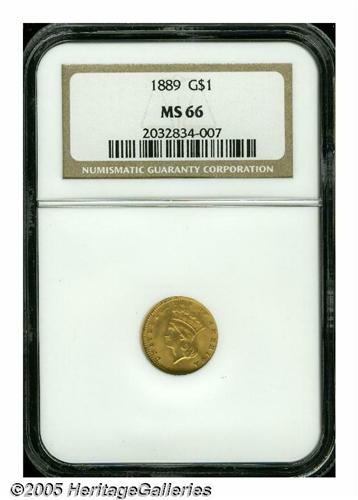 <B>1889<G$1> MS66 NGC.</B></I> A very attractive and pleasing coin for the grade, with resplendent surfaces and just a few hints of handling. Bright and lustrous, with a full strike and no distractions.<BR><I>From the Dr. Kurt Peters Collection.</B></I> From the Dr. Kurt Peters Collection.