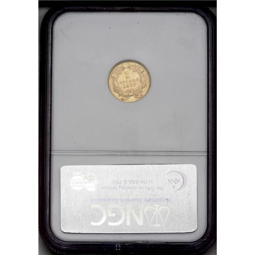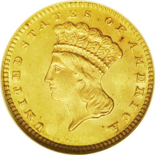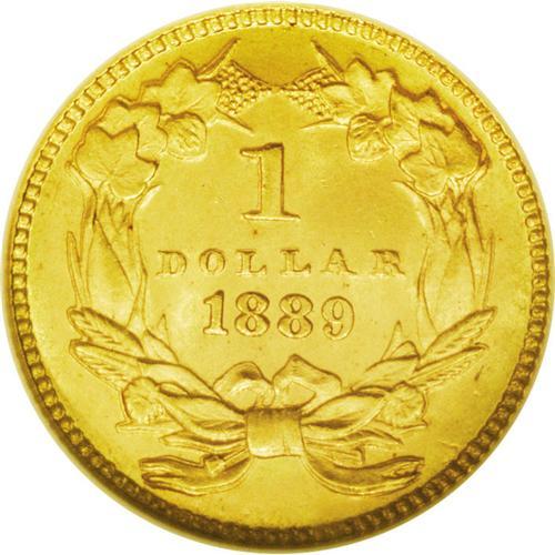 <B>1889<G$1> MS66 NGC.</B></I> The luscious copper-gold surfaces intermix hazel and olive hues. There are none of the often-seen clash marks, and neither is much of the often-seen strike weakness on the date or denomination, save for a touch of softness on the A in DOLLAR. The strike is pleasing elsewhere, with the headdress feathers well brought up. There are no abrasions of any consequence.