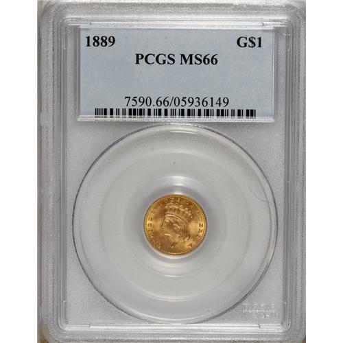 <B>1889 G$1 MS66 PCGS.</B></I> A characteristically well-preserved example of this final-year issue, solidly struck with pleasing amber-gold color with glints of honey-gold. An excellent candidate for the discerning type collector.<BR><BR><b>Shipping:</b> Coins & Currency (<a target="_blank" href="http://www.heritageauctions.com/common/shipping.php">view shipping information</a>)