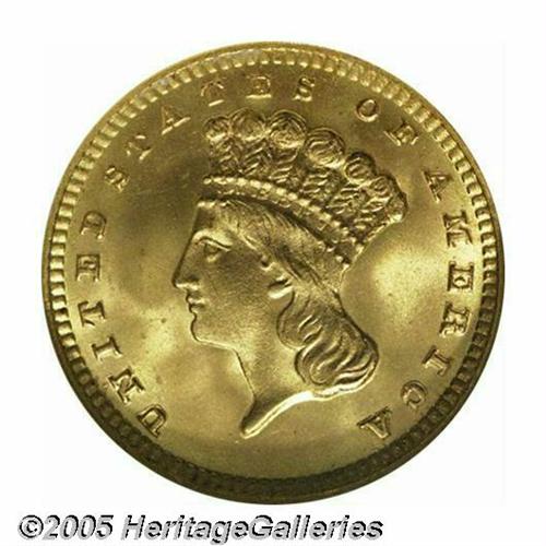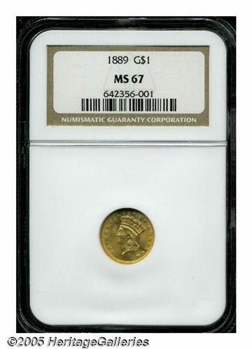 <B>1889<G$1> MS67 NGC.</B></I> An outstanding representative of this final-year issue. The surfaces glow with thick mint frost, and each side is nearly perfect in terms of technical preservation with an even layer of reddish patina throughout.