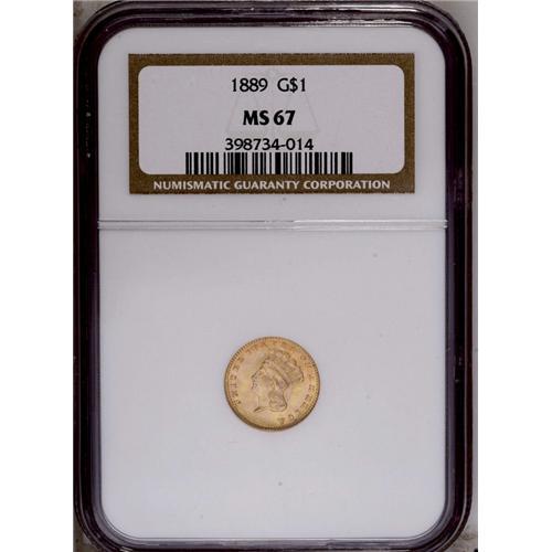 <B>1889<G$1> MS67 NGC.</B></I> Final year of issue and always a popular coin as such. This fully struck example has thick, coruscating mint luster and variegated olive and pink coloration that gives the coin much of its visual appeal. A pleasing coin in all respects, with only the tiniest and most insignificant contact marks and luster breaks.