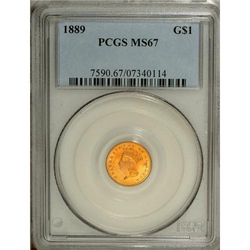 1889 G$1 MS67 PCGS. A Superb Gem specimen, this exampl