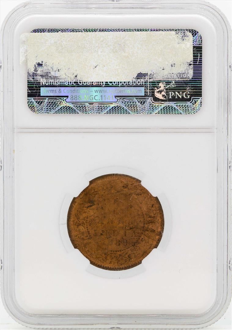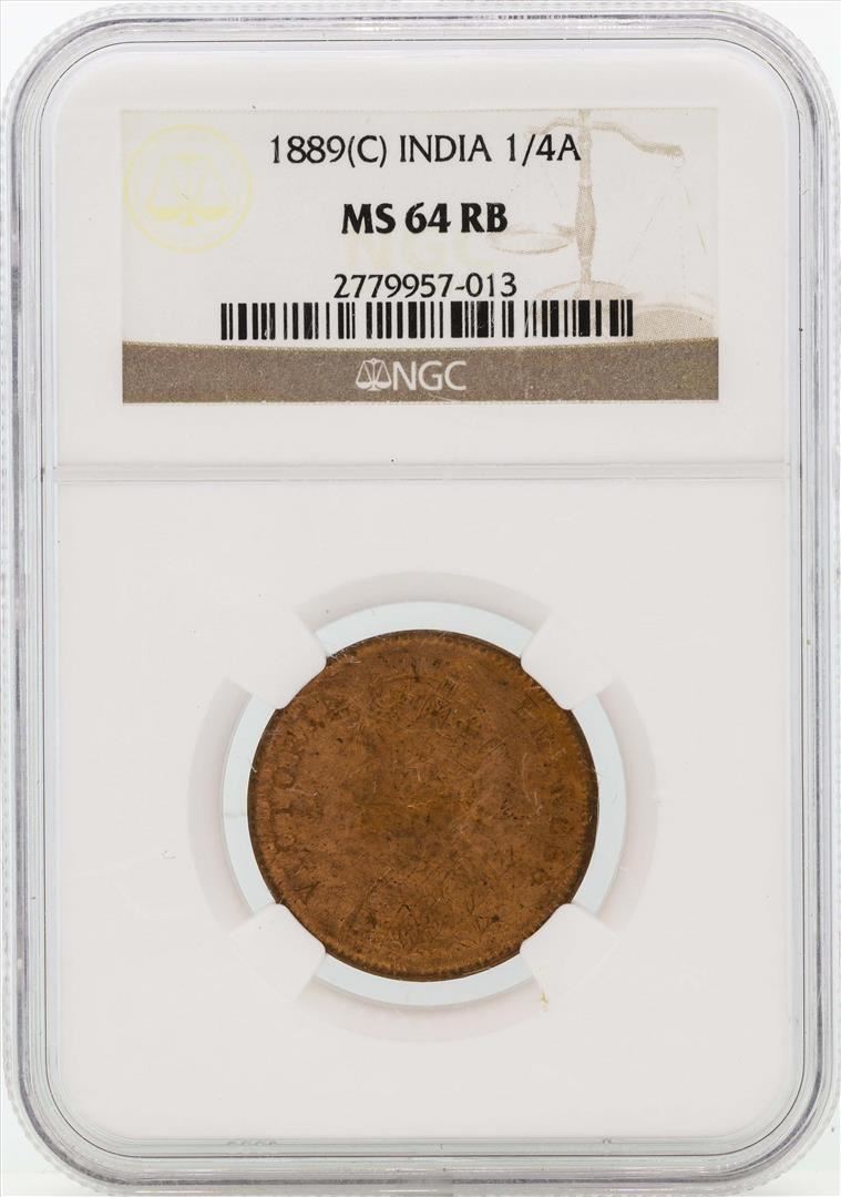 One 1889 India 1/4 Annas Coin NGC MS64RB. NGC Certified.