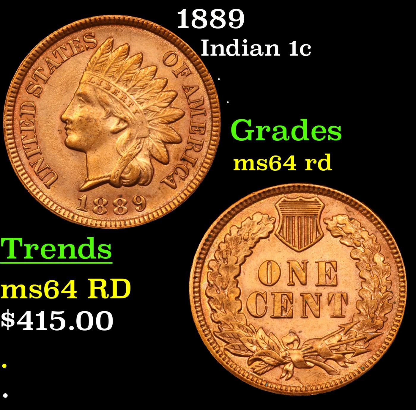 1889 Indian Cent 1c Grades Choice Unc RD.