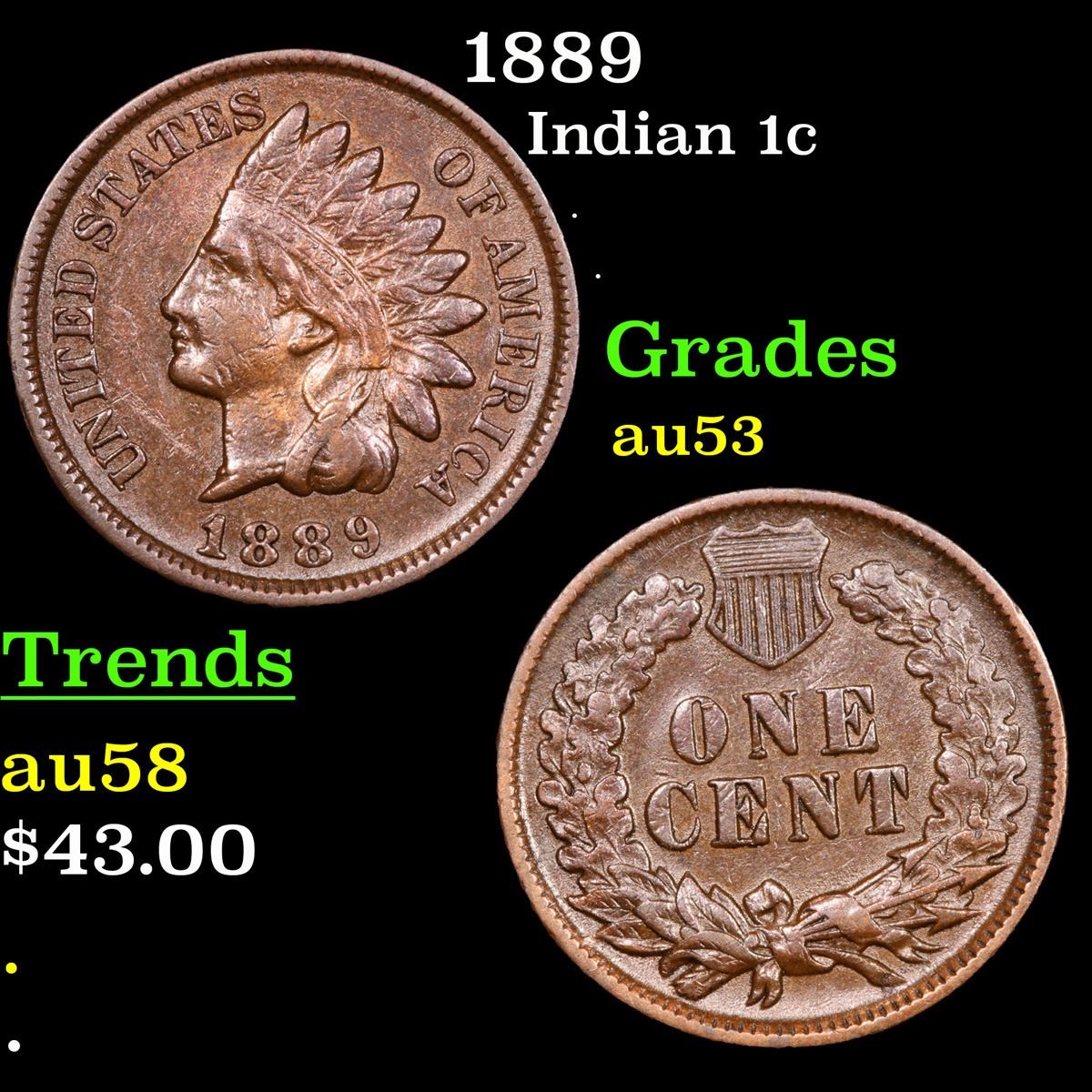 1889 . . Indian Cent 1c Grades Select AU.