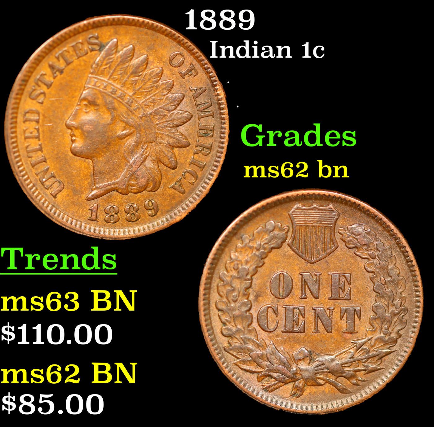 1889 Indian Cent 1c Grades Select Unc BN.