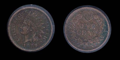 1889 Indian Cent XF detail; Good looking coin a bit rough, trends $10