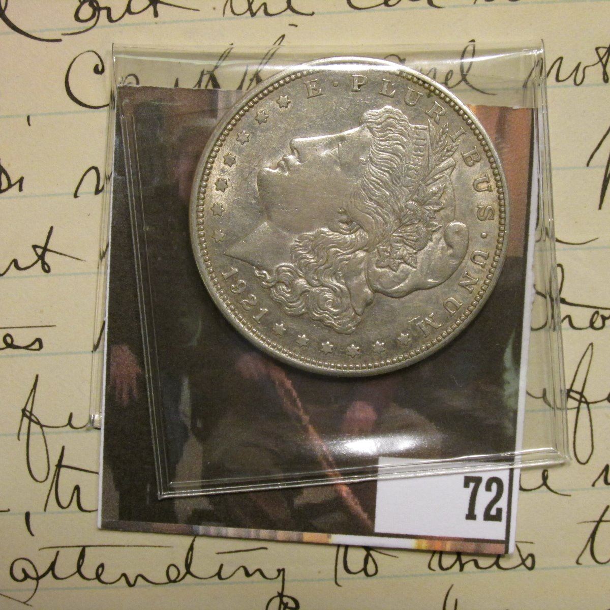 1889 Letter of Correspondence on stationery from "Burlington, Cedr Rapids & Northern Railway Train Master's Office" & a 1921 D U.S. Silver Morgan Dollar.