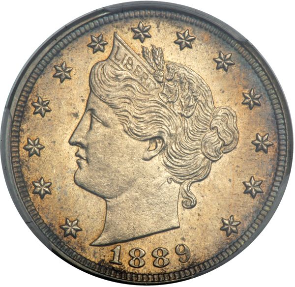 1889 Liberty Nickel. PCGS graded Proof 65 PQ. Only 3,336 struck. Wonderful golden toning on this outstanding Gem Proof. Pop 197; 89 finer (PCGS # 3887) .