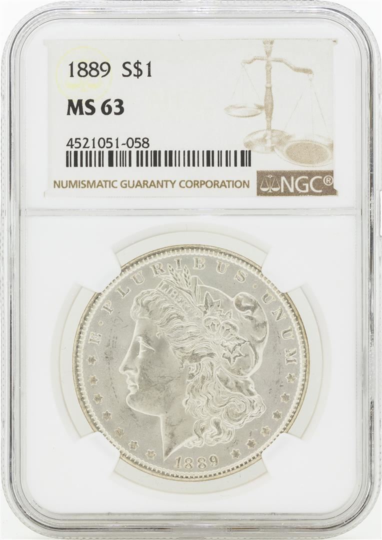 One 1889 MS63 NGC Morgan Silver Dollar NGC Certified.