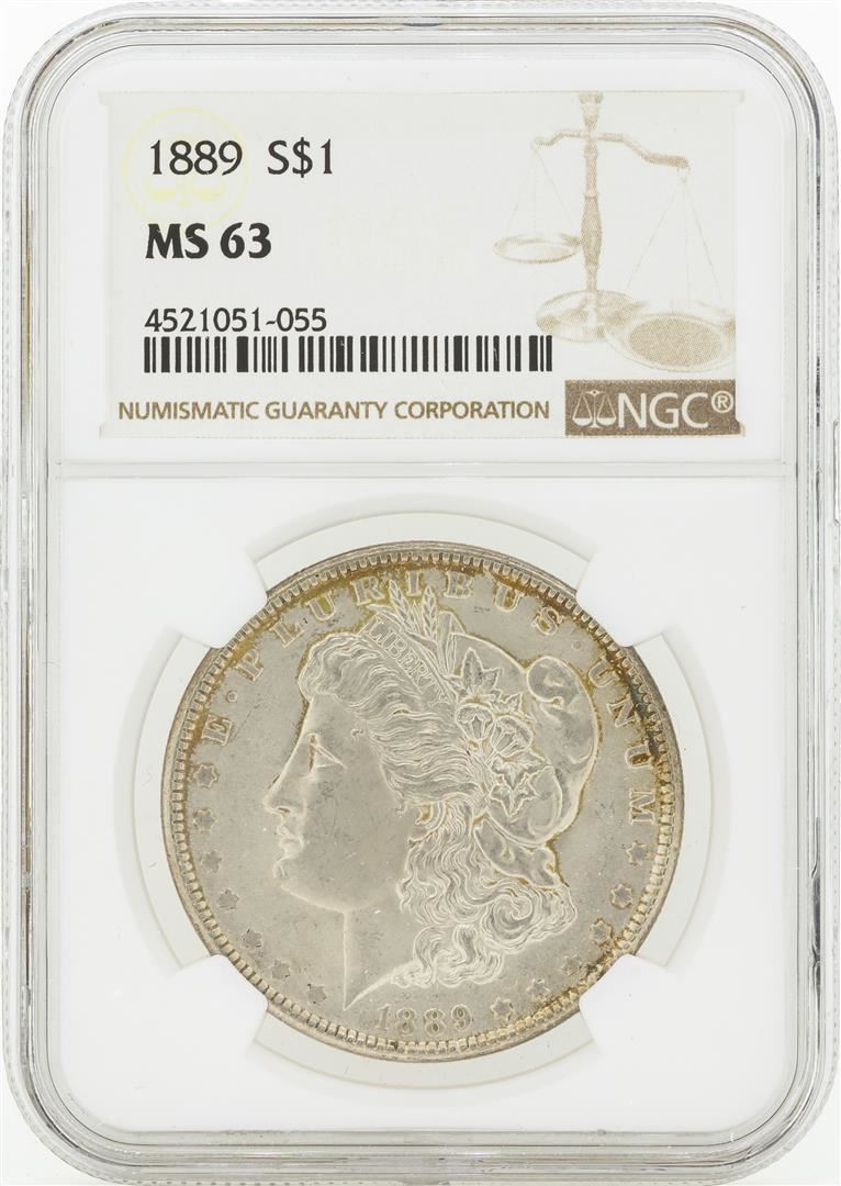 One 1889 MS63 NGC Morgan Silver Dollar NGC Certified.