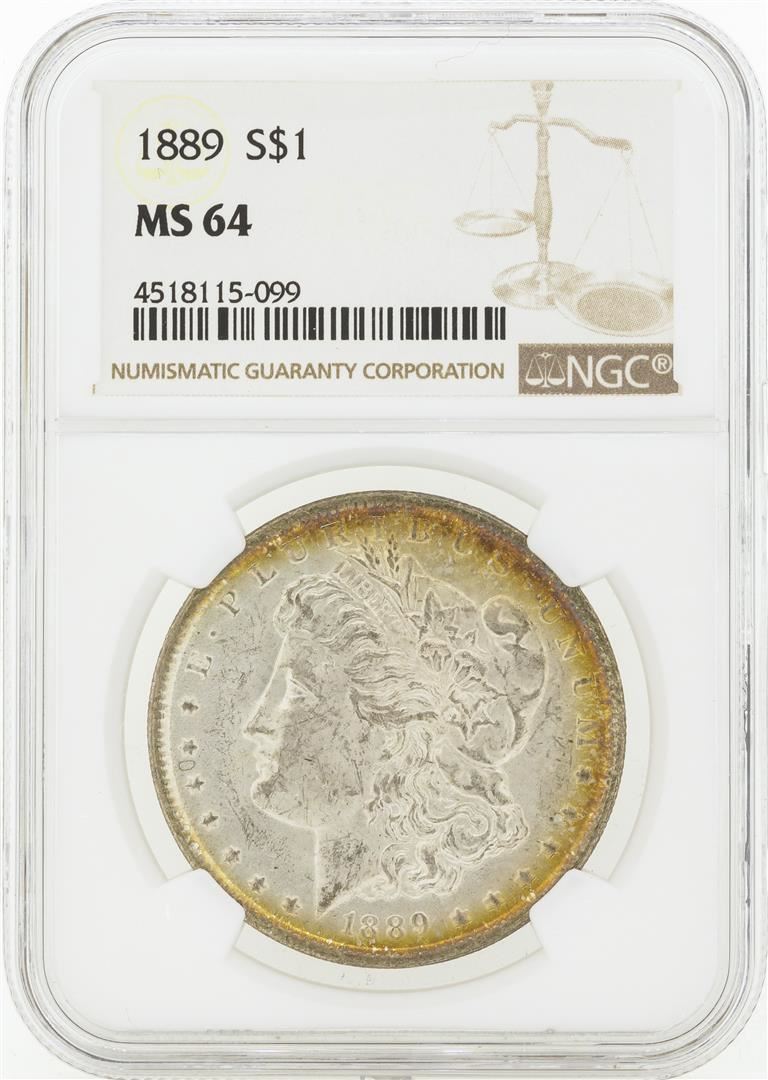 One 1889 MS64 NGC Morgan Silver Dollar NGC Certified.