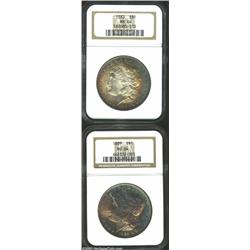 <TABLE cellSpacing=0 cellPadding=0 width="100%" bgColor=#000000 border=0><TBODY><TR><TD width="100%"><TABLE cellSpacing=1 cellPadding=3 width="100%" border=0><TBODY><TR><TD width="100%" bgColor=#79735c><FONT face=arial color=#ffffff size=3><B>Description</B> </FONT></TD></TR><TR><TD width="100%" bgColor=#ffffff><FONT face=arial size=2><B>1883 $1 MS64 NGC,</B></I> bands of golden-brown and sea-green patina; and an <B>1889 MS64 NGC,</B></I> dynamic violet, orange, and cobalt-blue colors, the dies are slightly rotated. Both coins are bold and lustrous with attractive preservation. (2 coins) </FONT></TD></TR></TBODY></TABLE></TD></TR></TBODY></TABLE><BR><A name=PricesRealized></A><TABLE cellSpacing=0 cellPadding=0 width="100%" bgColor=#000000 border=0><TBODY><TR><TD width="100%"><TABLE cellSpacing=1 cellPadding=3 width="100%" border=0><TBODY><TR><TD width="100%" bgColor=#79735c><A name=PR><FONT face=arial color=#ffffff size=3><B>Previous Prices from Heritage Auctions</B> </FONT></A></TD></TR><TR><TD bgColor=#f6f6ed><TABLE cellSpacing=0 cellPadding=0 width="100%" border=1><TBODY><TR><TD align=middle width="33%"><B>Date</B></TD><TD align=middle width="33%"><B>Service</B></TD><TD align=middle width="33%"><B>Price</B></TD></TR><TR bgColor=whitesmoke><TD width="33%"><B>10/07/2001</B></TD><TD width="33%">NGC</TD><TD width="33%">$87.40</TD></TR><TR bgColor=whitesmoke><TD width="33%"><B>09/25/2001</B></TD><TD width="33%">NGC</TD><TD width="33%">$43.00</TD></TR><TR bgColor=whitesmoke><TD width="33%"><B>04/03/2001</B></TD><TD width="33%">NGC</TD><TD width="33%">$45.00</TD></TR><TR bgColor=whitesmoke><TD width="33%"><B>12/19/2000</B></TD><TD width="33%">NGC</TD><TD width="33%">$35.00</TD></TR><TR bgColor=whitesmoke><TD width="33%"><B>02/08/2000</B></TD><TD width="33%">NGC</TD><TD width="33%">$40.00</TD></TR><TR bgColor=whitesmoke><TD width="33%"><B>02/12/2000</B></TD><TD width="33%">NGC</TD><TD width="33%">$46.00</TD></TR><TR bgColor=whitesmoke><TD width="33%"><B>11/21/2000</B></TD><TD width="33%">NGC</TD><TD width="33%">$38.00</TD></TR><TR bgColor=whitesmoke><TD width="33%"><B>10/08/1994</B></TD><TD width="33%">NGC</TD><TD width="33%">$121.00</TD></TR><TR bgColor=whitesmoke><TD width="33%"><B>10/08/1994</B></TD><TD width="33%">NGC</TD><TD width="33%">$33.00</TD></TR><TR bgColor=whitesmoke><TD width="33%"><B>11/17/1995</B></TD><TD width="33%">NGC</TD><TD width="33%">$38.50</TD></TR><TR bgColor=whitesmoke><TD width="33%"><B>07/11/2000</B></TD><TD width="33%">NGC</TD><TD width="33%">$70.00</TD></TR><TR bgColor=whitesmoke><TD width="33%"><B>02/29/2000</B></TD><TD width="33%">NGC</TD><TD width="33%">$40.00</TD></TR><TR bgColor=whitesmoke><TD width="33%"><B>09/17/2002</B></TD><TD width="33%">ANACS</TD><TD width="33%">$33.35</TD></TR><TR bgColor=whitesmoke><TD width="33%"><B>11/26/2002</B></TD><TD width="33%">PCGS</TD><TD width="33%">$40.25</TD></TR><TR bgColor=whitesmoke><TD width="33%"><B>06/02/2003</B></TD><TD width="33%">NGC</TD><TD width="33%">$120.75</TD></TR><TR bgColor=whitesmoke><TD width="33%"><B>07/22/2003</B></TD><TD width="33%">PCGS</TD><TD width="33%">$41.40</TD></TR><TR bgColor=whitesmoke><TD width="33%"><B>01/11/2003</B></TD><TD width="33%">PCGS</TD><TD width="33%">$287.50</TD></TR><TR bgColor=whitesmoke><TD width="33%"><B>11/12/2002</B></TD><TD width="33%">PCGS</TD><TD width="33%">$47.15</TD></TR><TR bgColor=whitesmoke><TD width="33%"><B>09/24/2002</B></TD><TD width="33%">PCGS</TD><TD width="33%">$35.65</TD></TR><TR bgColor=whitesmoke><TD width="33%"><B>04/16/2002</B></TD><TD width="33%">PCGS</TD><TD width="33%">$37.95</TD></TR><TR bgColor=whitesmoke><TD width="33%"><B>03/05/2002</B></TD><TD width="33%">PCGS</TD><TD width="33%">$50.60</TD></TR><TR bgColor=whitesmoke><TD width="33%"><B>06/02/2001</B></TD><TD width="33%">PCGS</TD><TD width="33%">$51.75</TD></TR><TR bgColor=whitesmoke><TD width="33%"><B>12/26/2000</B></TD><TD width="33%">PCGS</TD><TD width="33%">$35.00</TD></TR><TR bgColor=whitesmoke><TD width="33%"><B>12/19/2000</B></TD><TD width="33%">PCGS</TD><TD width="33%">$46.00</TD></TR><TR bgColor=whitesmoke><TD width="33%"><B>07/11/2000</B></TD><TD width="33%">PCGS</TD><TD width="33%">$40.00</TD></TR><TR bgColor=whitesmoke><TD width="33%"><B>07/04/2000</B></TD><TD width="33%">PCGS</TD><TD width="33%">$60.00</TD></TR><TR bgColor=whitesmoke><TD width="33%"><B>10/24/2000</B></TD><TD width="33%">PCGS</TD><TD width="33%">$40.00</TD></TR><TR bgColor=whitesmoke><TD width="33%"><B>04/18/2000</B></TD><TD width="33%">PCGS</TD><TD width="33%">$45.00</TD></TR><TR bgColor=whitesmoke><TD width="33%"><B>08/14/1999</B></TD><TD width="33%">PCGS</TD><TD width="33%">$74.75</TD></TR><TR bgColor=whitesmoke><TD width="33%"><B>01/06/1996</B></TD><TD width="33%">PCGS</TD><TD width="33%">$77.00</TD></TR><TR bgColor=whitesmoke><TD width="33%"><B>06/04/1999</B></TD><TD width="33%">PCGS</TD><TD width="33%">$51.75</TD></TR><TR bgColor=whitesmoke><TD width="33%"><B>06/06/2000</B></TD><TD width="33%">PCGS</TD><TD width="33%">$70.00</TD></TR><TR bgColor=whitesmoke><TD width="33%"><B>05/16/2000</B></TD><TD width="33%">PCGS</TD><TD width="33%">$50.00</TD></TR><TR bgColor=whitesmoke><TD width="33%"><B>06/05/2001</B></TD><TD width="33%">PCGS</TD><TD width="33%">$45.00</TD></TR><TR bgColor=whitesmoke><TD width="33%"><B>06/19/2001</B></TD><TD width="33%">PCGS</TD><TD width="33%">$43.00</TD></TR><TR bgColor=whitesmoke><TD width="33%"><B>06/02/2001</B></TD><TD width="33%">PCGS</TD><TD width="33%">$32.20</TD></TR><TR bgColor=whitesmoke><TD width="33%"><B>06/02/2001</B></TD><TD width="33%">PCGS</TD><TD width="33%">$40.25</TD></TR><TR bgColor=whitesmoke><TD width="33%"><B>10/31/2000</B></TD><TD width="33%">ANACS</TD><TD width="33%">$46.00</TD></TR><TR bgColor=whitesmoke><TD width="33%"><B>07/22/2003</B></TD><TD width="33%">NGC</TD><TD width="33%">$86.25</TD></TR></TBODY></TABLE></TD></TR><TR><TD bgColor=#ffffff><FONT face=arial size=1 ?>PLEASE NOTE: All prices realized reflect the final hammer price PLUS the buyer's premium in 