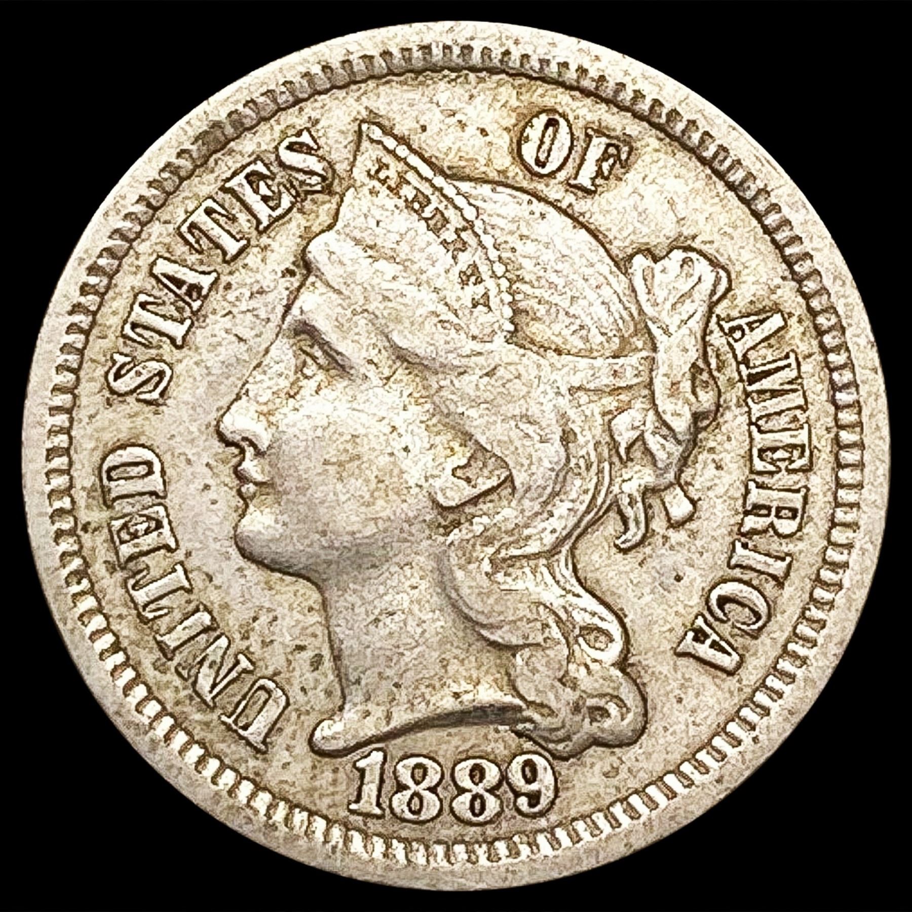 1889 Nickel Three Cent NEARLY UNCIRCULATED