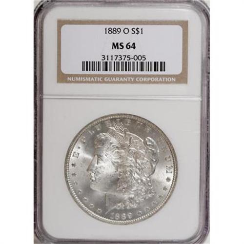 <B>1889-O $1 MS64 NGC. </B></I>Population: 1186 in 64, 140 finer (12/07).Census: 779 in 64, 50 finer (12/07).<BR><BR><B>Coin Engraver:</B> George T. Morgan<BR><BR><b>Shipping:</b> Coins & Currency (<a target="_blank" href="http://www.heritageauctions.com/common/shipping.php">view shipping information</a>)