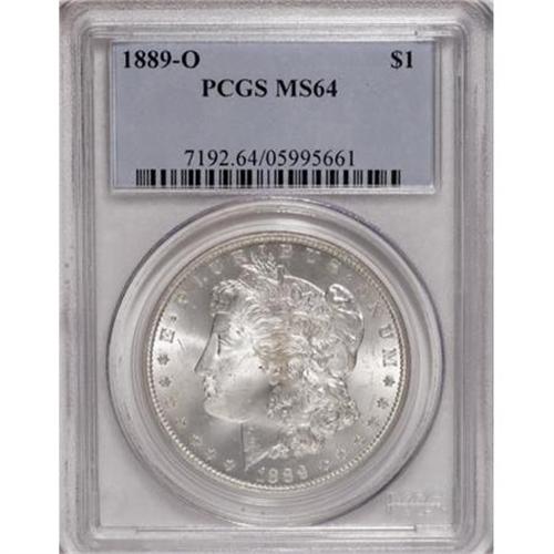 <B>1889-O $1 MS64 PCGS.</B></I> Highly lustrous with traces of reddish patina on each side. The usual central striking weakness is apparent, though the overall definition is pleasing, particularly on the reverse.<BR><BR><B>Coin Engraver:</B> George T. Morgan<BR><BR><b>Shipping:</b> Coins & Currency (<a target="_blank" href="http://www.heritageauctions.com/common/shipping.php">view shipping information</a>)