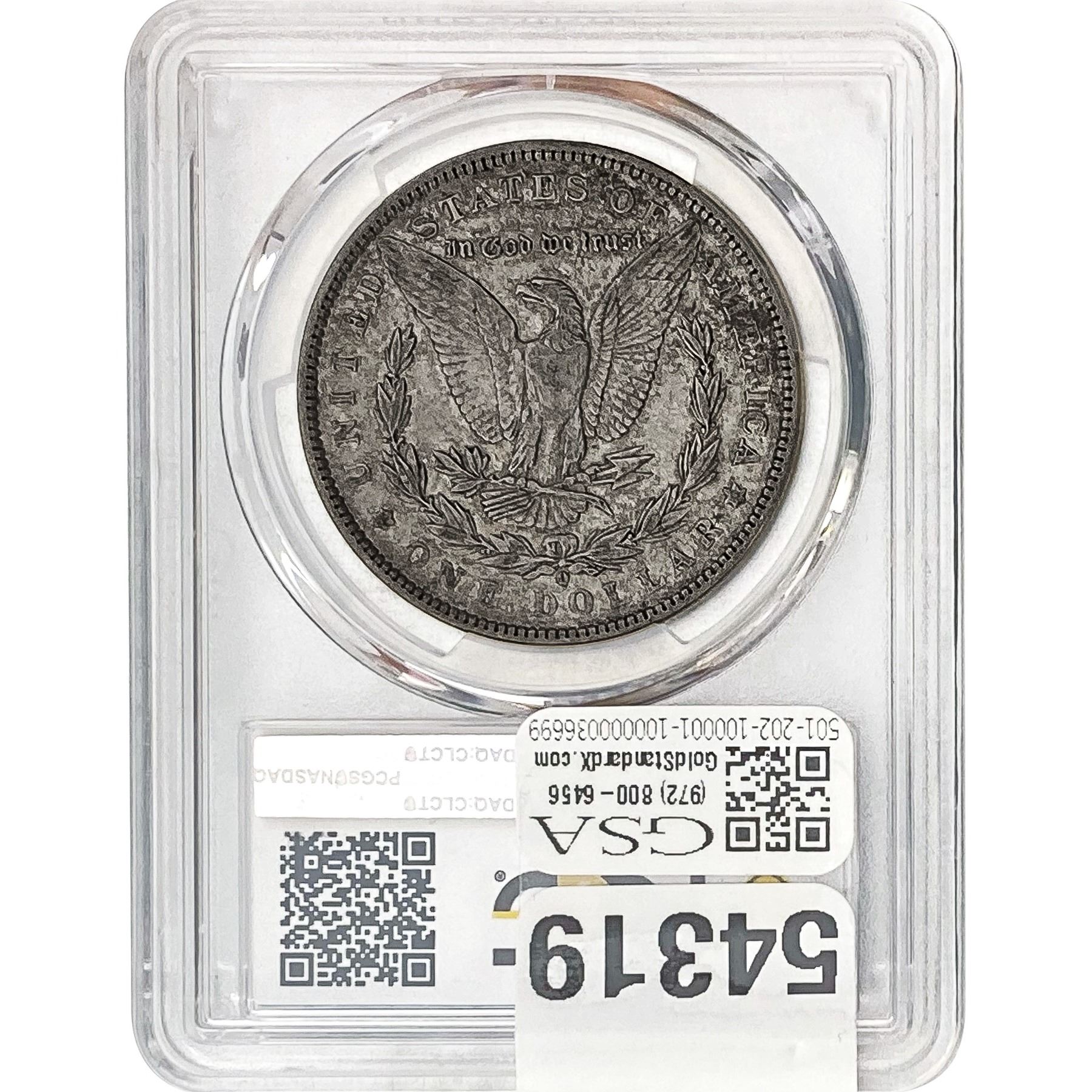 COINS AND CURRENCY LISTED IN GSA’S CATALOG AS GRADED AND ENCAPSULATED BY PCGS, NGC, ANACS, ICG, PCGS CURRENCY, PMG, PCGS BANKNOTE GRADING, CMC OR ANY OTHER THIRD-PARTY GRADING SERVICE ARE LIKEWISE SOLD “AS-IS” EXCEPT AS EXPRESSLY SET FORTH HEREIN. ALL THIRD-PARTY GRADING SERVICE GUARANTEES, INCLUDING AUTHENTICITY, ARE THE SOLE RESPONSIBILITY OF THE THIRD-PARTY GRADING SERVICE AND NOT WARRANTIES OR GUARANTEES OF GSA. BIDDERS SHOULD CONTACT THESE THIRD-PARTY GRADING SERVICES DIRECTLY WITH RESPECT TO ANY CLAIMS OR QUESTIONS THEY MAY HAVE CONCERNING THEIR GUARANTEES AND WARRANTIES. BIDDERS ACKNOWLEDGE AND AGREE THAT AUCTIONEER IS NOT BOUND BY OR LIABLE FOR ANY OPINION OR CERTIFICATION BY ANY THIRD-PARTY GRADING SERVICE. REMOVAL OF A PRODUCT FROM ITS PROTECTIVE CASING OR HOLDER OR ALTERATION OF ANY COIN HOLDER WAIVES ALL RIGHTS CONCERNING THE PRODUCT CONTAINED THEREIN.