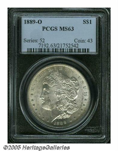 <B>1889-O<S$1> MS63 PCGS.</B></I> Light gold color adorns the borders. Boldly struck and lustrous, a graze on the cheek denies a higher grade.