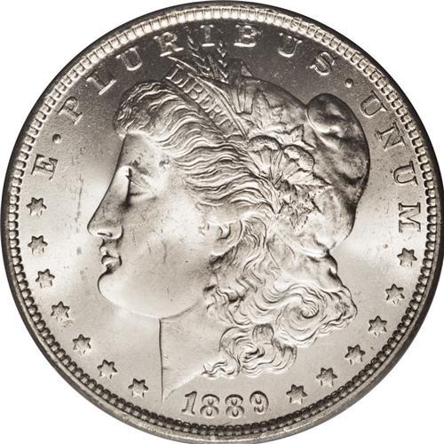 <B>1889-O S$1 MS65 PCGS.</B></I> This example is a wonderful Gem that will appeal to nearly any Morgan dollar collector, even the advanced Set Registry collector. The frosty surfaces are fully brilliant with no evidence of toning on either side. Only nine finer examples of this date have been certified by PCGS (10/06).<BR><BR><b>Shipping:</b> Coin/Currency (<a target="_blank" href="http://www.heritageauctions.com/common/shipping.php">view shipping information</a>)