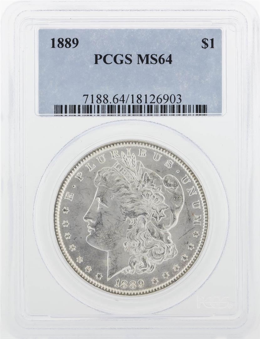 One 1889 PCGS MS64 Morgan Silver Dollar.