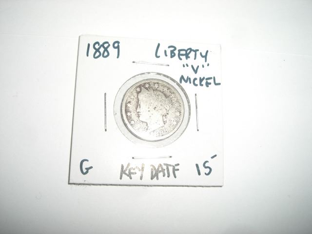 1889 *RARE KEY DATE* LIBERTY "V" NICKEL BOOK VALUE $15.00+ *NICE EARLY GOOD GRADE* NICKEL!! COIN CAME OUT OF SAFE!! ***Coin, Currency & All Items Listed in this auction - Grades, Conditions and Values are not Safe Deposit Coins LLC Responsibilty. Grades, Condition and Values are determined by Consigner(s) & Buyers ONLY