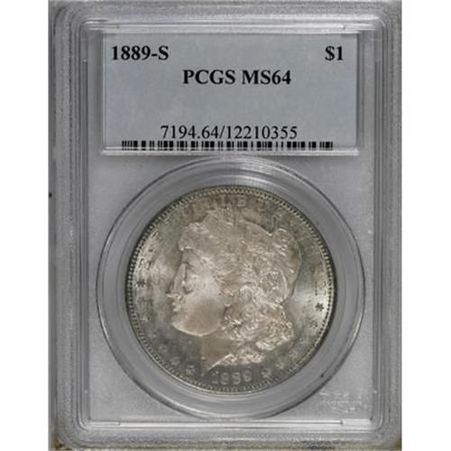 <B>1889-S $1 MS64 PCGS.</B></I> . PCGS Population (1859/568). NGC Census: (1114/237). Mintage: 700,000. Numismedia Wsl. Price for NGC/PCGS coin in MS64: $440. (#7194)<BR><BR><B>Coin Engraver:</B> George T. Morgan<BR><BR><b>Shipping:</b> Coins & Currency (<a target="_blank" href="http://www.heritageauctions.com/common/shipping.php">view shipping information</a>)