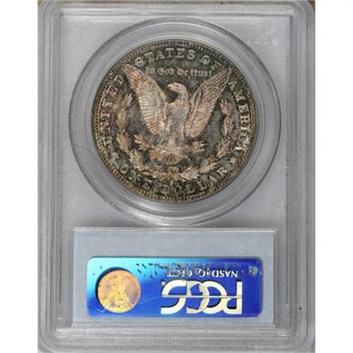 <B>1889-S $1 MS65 PCGS.</B></I> Slightly soft over the centers, but well struck elsewhere, this attractive Gem displays a rich layer of mottled russet patina over the reverse, and variegated russet and olive peripheral toning on the obverse. Lustrous and nicely preserved, with a handful of small abrasions noted on the eagle's breast. <BR><BR><B>Coin Engraver:</B> George T. Morgan<BR><BR><b>Shipping:</b> Coins & Currency (<a target="_blank" href="http://www.heritageauctions.com/common/shipping.php">view shipping information</a>)