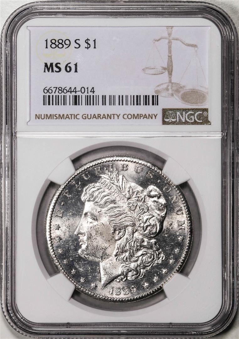 One 1889-S $1 Morgan Silver Dollar Coin NGC MS61. NGC Certified.