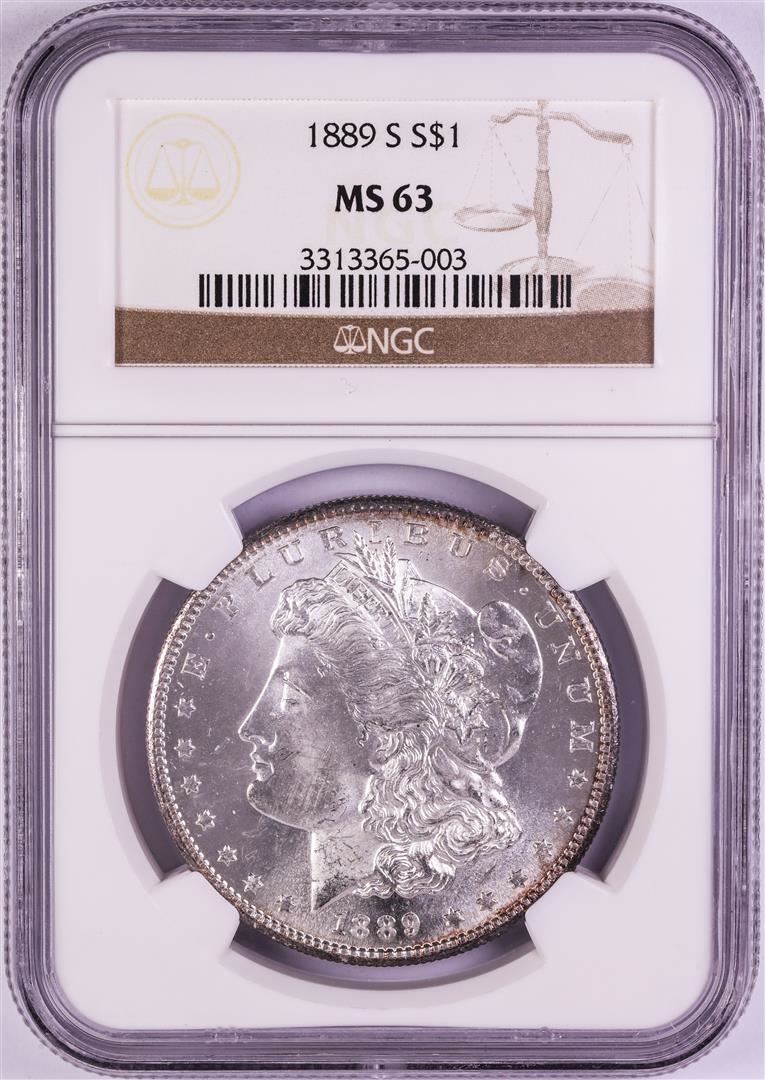 One 1889-S $1 Morgan Silver Dollar Coin NGC MS63. NGC Certified.